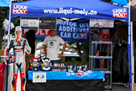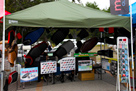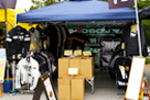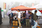 富士山麓にある会場のふじてんリゾートは標高が高いので、「曇りだとちょうど良いですね、このままいってくれれば」とお並びのみなさんが思うほどの快適な気温でした。ところが、午後から雨という予報に反して開場時間を少し過ぎた頃から降り始め、時おり霧に包まれてしまいました。前日に汗だくになって会場準備をしたスタッフ達も、天候はどうにもできません。何とか良いお天気になってくれることを祈りながらお待ちしました。