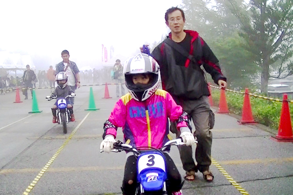 キッズバイク体験コーナーでバイクデビュー! ワンコインの500円で体験していただけます。昨年までのポケバイから、より親しみやすいYAMAHA PW50にパワーアップ! 5台の内1台は記念写真用に置いておいたので、お子様は興味津々。