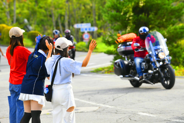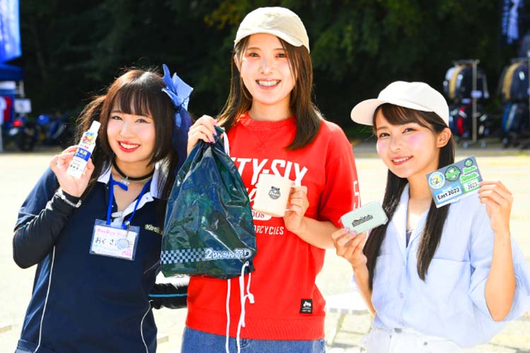 たくさんのコンテンツを楽しんでいると、あっという間に閉場の時刻がやってきます。バイクで走り、みなさんの笑顔に接することができて、スタッフも楽しませていただいたイベントとなりました。ご来場くださったみなさんも同じ気持ちになっていてくれたらとてもうれしいです。感謝を込めたお見送りにはこつぶさん、せんちゃんさん、奥沙織さんが立ってくれました。名残を惜しみつつ、安全に帰宅できることを願って手を振りました。ご来場、本当にありがとうございました!