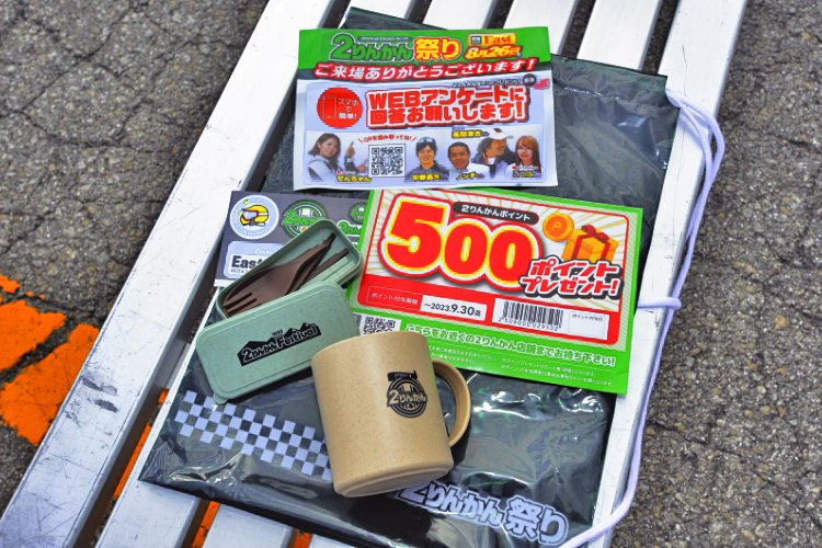 「雨具を用意して、覚悟を決めてバイクで来ました」(参加者)や「宿も取っていたし、来ないという選択はなかったです」(同)、「降る前に帰るつもりで、急いで楽しんでいます」(同)というみなさんの気持ちと交わり、たくさんの笑顔が溢れるイベントになりました。3,000個用意した記念品もなくなり、会場全体が活気に満ちていました。