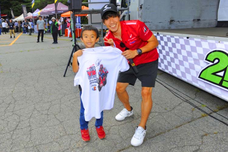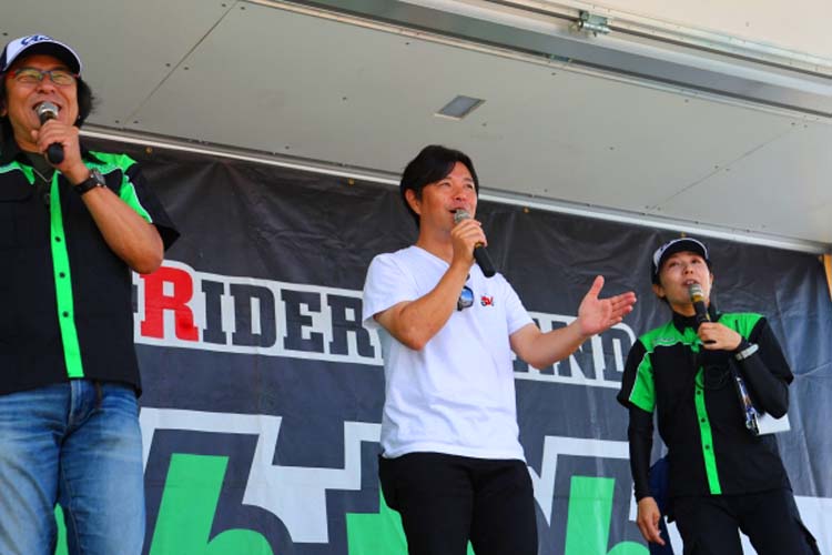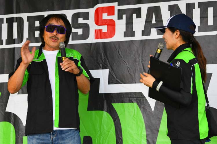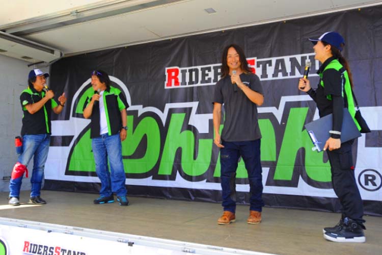 免許を取得してからバイクに乗っていなかったのはたった3年ほどで、あとは乗り続けている生粋のバイク好き! エピソードにはこと欠きません! 相方の安田さんもライダーということで、若手時代の話もしてくれました。ユーチューブをやっているノッチさん。チャンネル登録をしてくれた人には急遽ステッカーをプレゼントということで、ステージを降りてからも大人気! きっと登録者数が激増したことだと思います。
