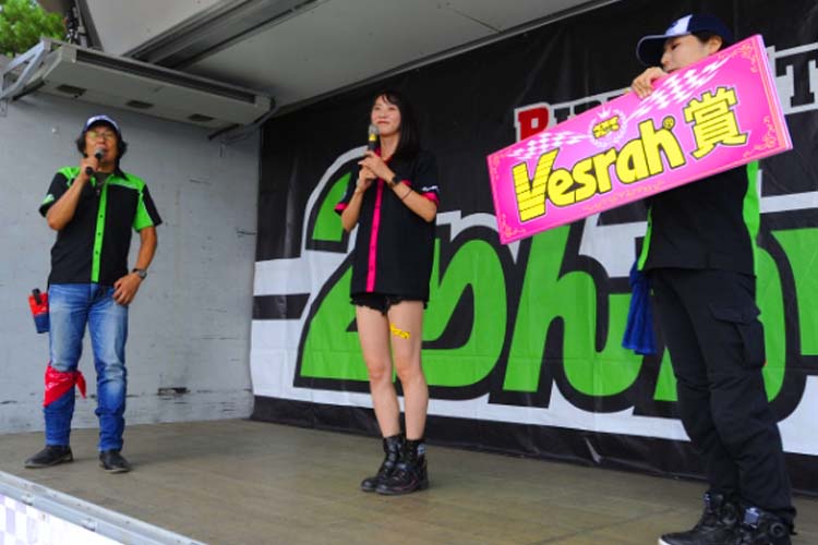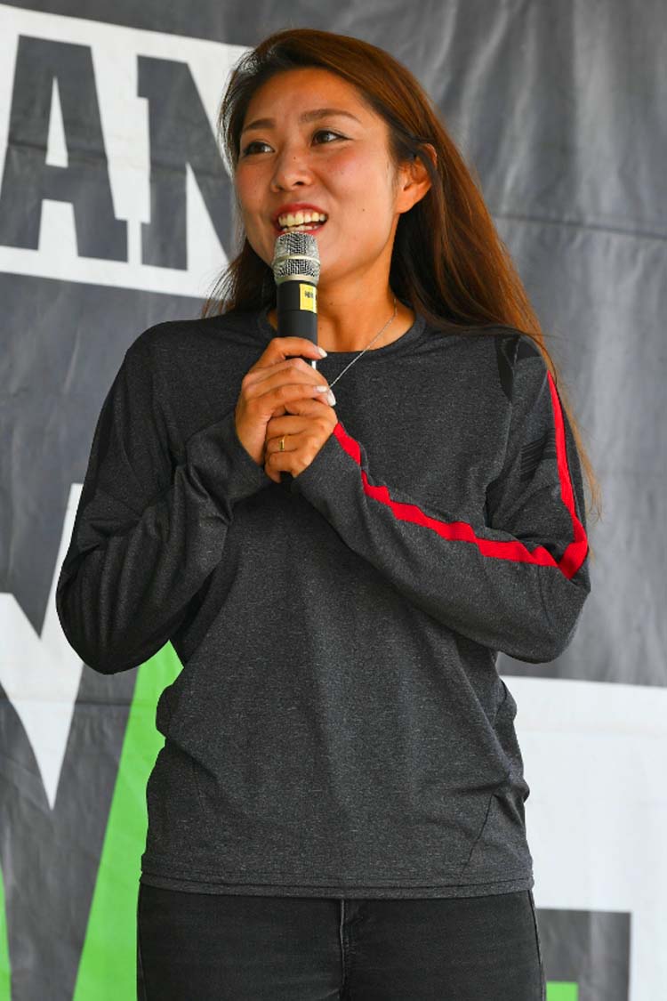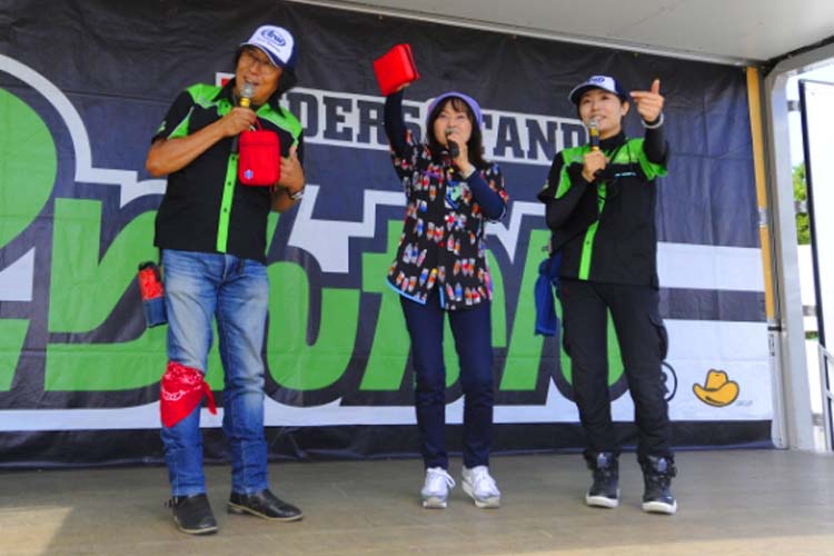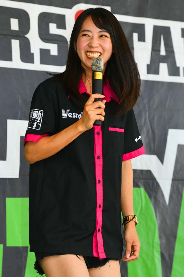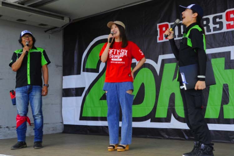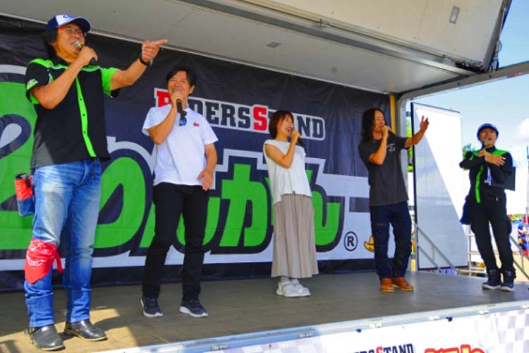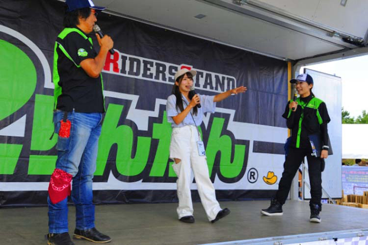 ライダーに人気のテレビ番組、BS11・MOTORISE(モトライズ)の公開収録も行われました。中野さんをはじめ、俳優の風間晋之介さん、新たな出演者として女優の小野木里奈さんが登壇。2りんかん祭りのMC末飛登さんと柴田さんも加わり、普段とはちょっと違う雰囲気でトークが展開されていきます。さらに新たなファミリー候補(?)竹川由華さんも登壇。 この内容はMOTORISEにて10月頃に放送予定とのことなので、ぜひお楽しみに!