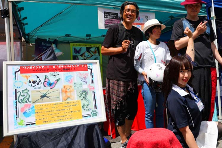 ヘルメットや小物の他にも体へもペイントしてくれる『ワンポイントアート』。ボディペイントは“お祭りだけの特別感”が出ますし、小物やヘルメットにやってもらえば記念に残ります。
