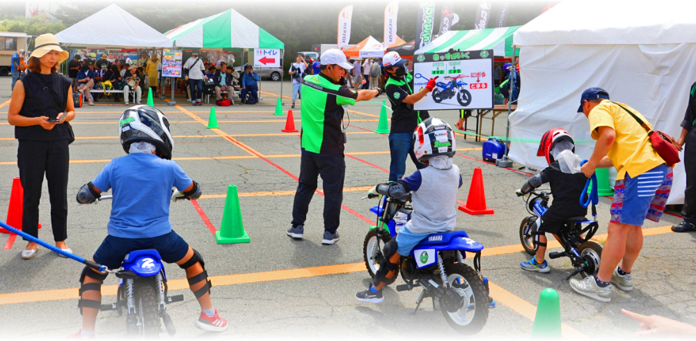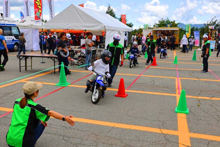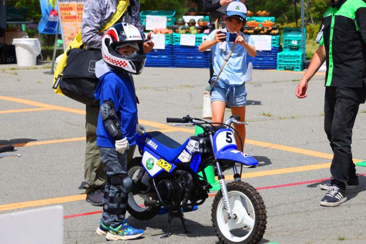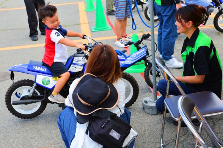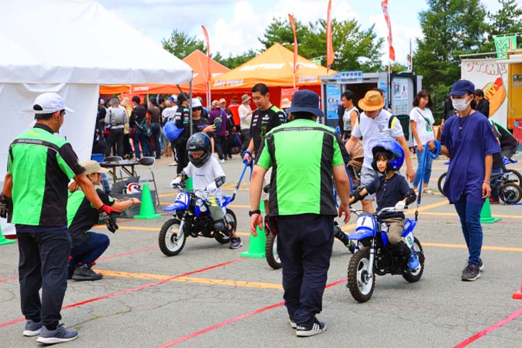 お子様のバイクデビューを飾れるのがキッズバイク体験。ヤマハのPW、そしてヨツバモトはワンコインの500円でお乗りいただけます。基本的にはPWですが、足が着かない場合はヨツバモトを使用します。ヘルメットやプロテクターは無料レンタルですし、その場合はヘルメットインナーを使用します。それらの装着、そして運転のレクチャーも全てスタッフが行いますので安心です。子供達の真剣な眼差しは本当に特別なもの。休憩している大人たちも思わず応援したり、感心したりと見入ってしまうほどでした。