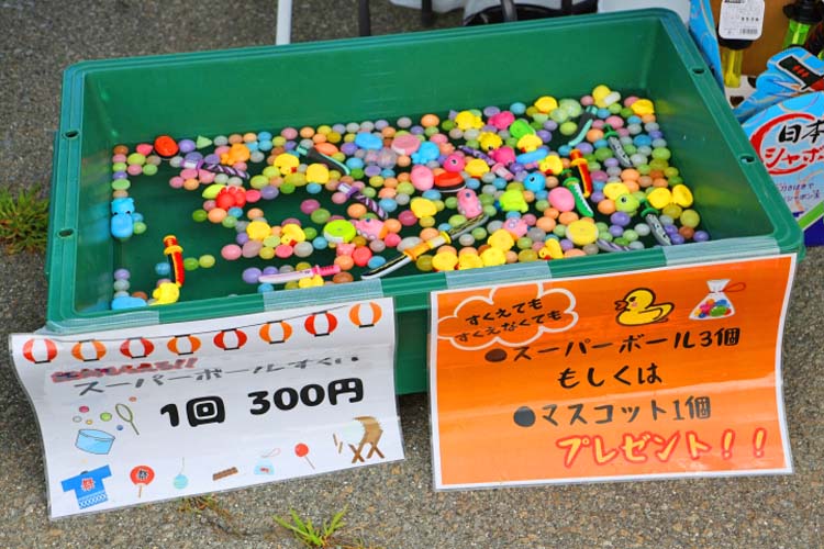 お子様の気軽な楽しみとして人気なのが縁日コーナーのスーパーボールすくい。300円で参加でき、一個も取れなかったとしても景品はもらえます。お子さんの眼差しは真剣そのもので、夢中になっている姿が微笑ましかったです。