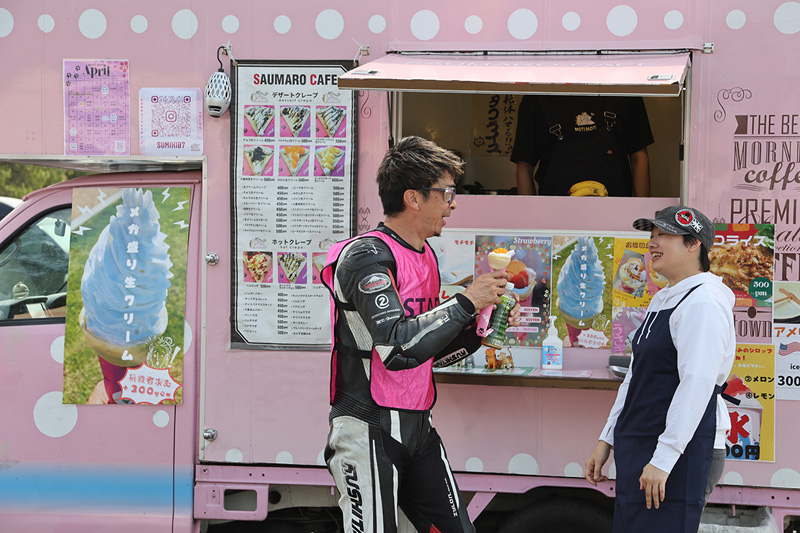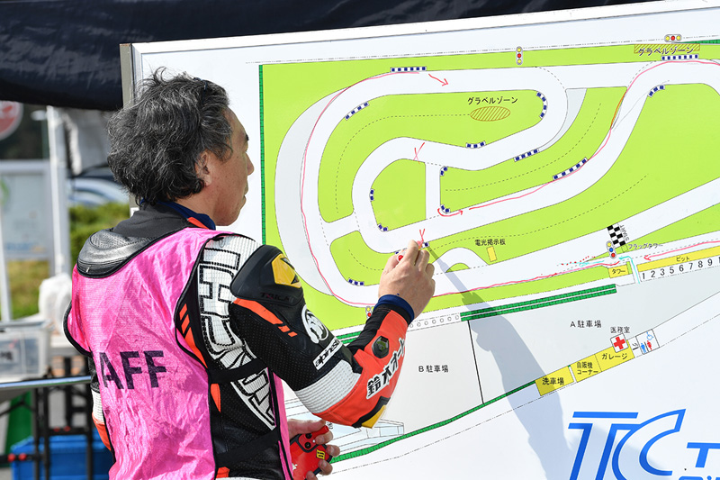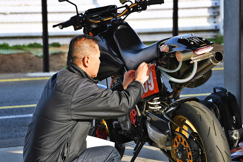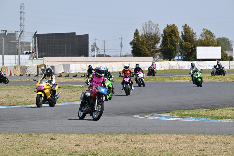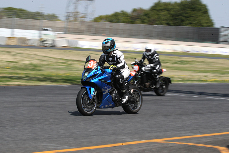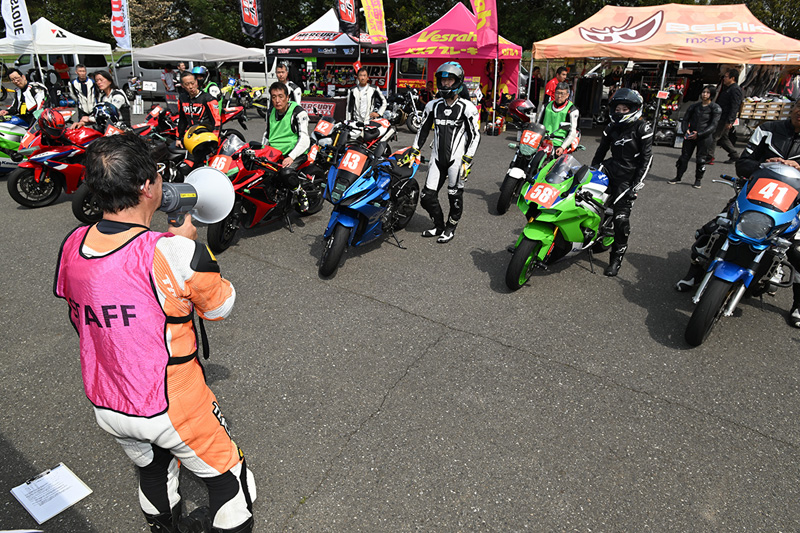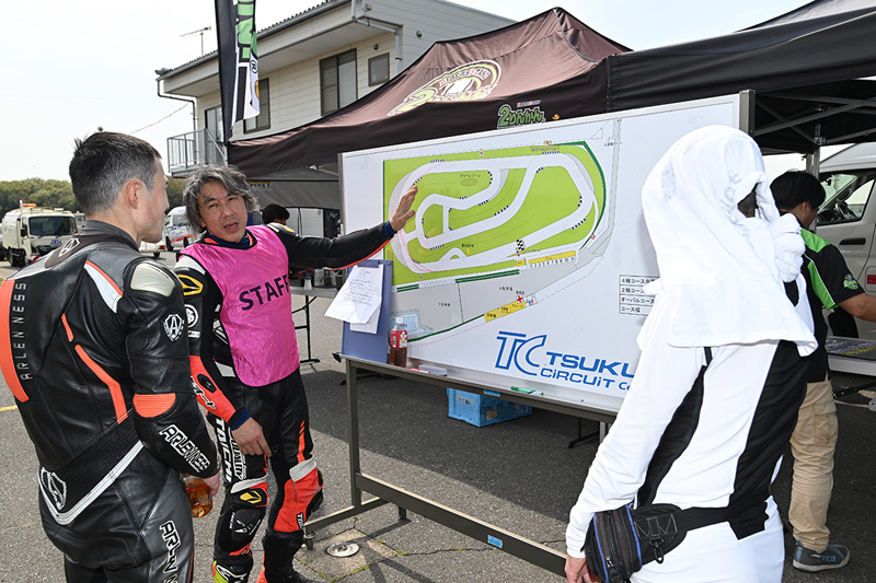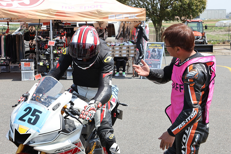 そこで、このコース1000での開催では、クラスごとに走行後のワンポイントアドバイスを導入。速さというより、楽しく走るためのポイントを伝授。もちろん、個人的な質問にも可能な限りお答えします。また、革ツナギなどを着用せずに走れる体験クラスも用意しました。