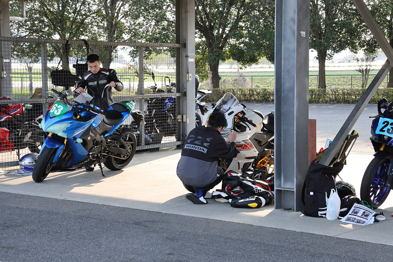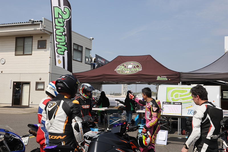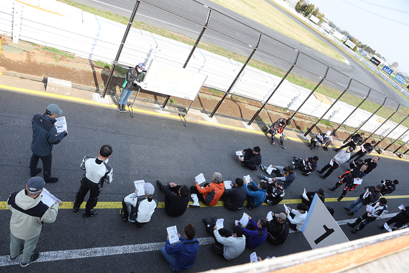 開催した4月17日は好天に恵まれ、絶好のサーキット走行日和となりました。みなさん存分に走って大満足のようす。上達していく感覚は、最高なものなのです。ちなみに全周回でタイム計測を行なっており、走行終了後にまとめてお渡ししています。走りやすくなった後のタイムを確認できるので、今後のライディングテクニック向上に役立てていただけるように配慮しています。
