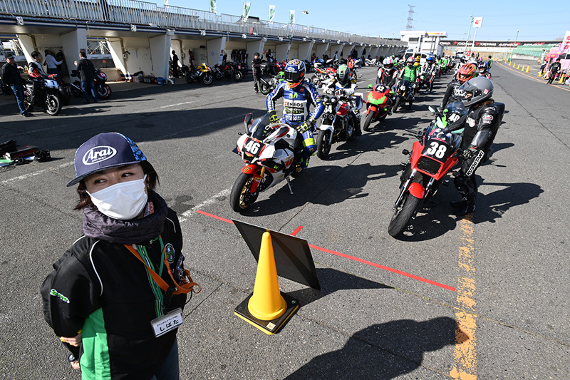 3月14日は平日にも関わらず、たくさんの方にご参加いただきました。晴天の広がる空の下、春らしい暖かさに包まれて絶好のサーキット走行日和となりました。今回はホワイトデーの開催ということで、通常のドリンクのほかに、特別にお菓子のプレゼントをしました。