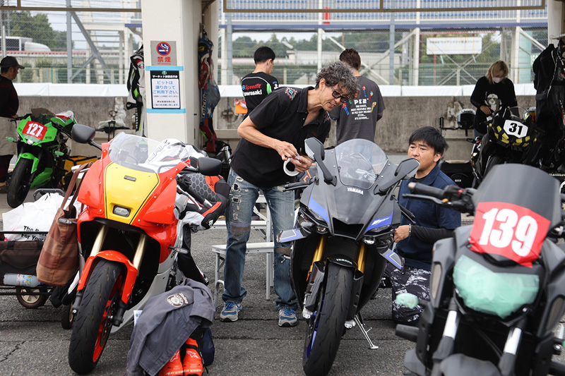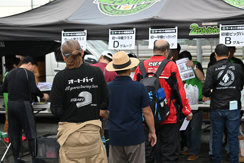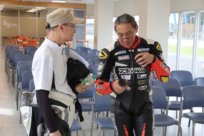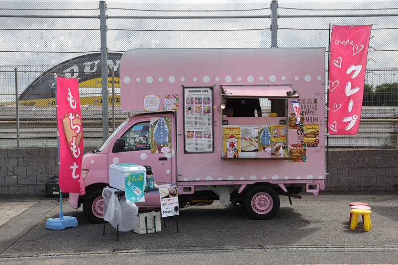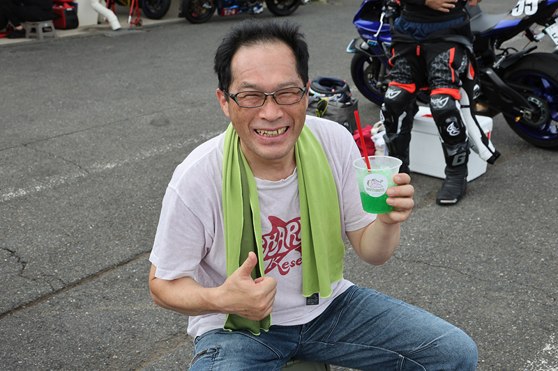秋になったとは言えサーキット走行はスポーツですから、暑くも感じますし喉も渇きます。受付でプレゼントしたドリンクを飲んだり、キッチンカーで買えるかき氷を楽しんだり、それぞれのクールダウンタイムを作っていました。