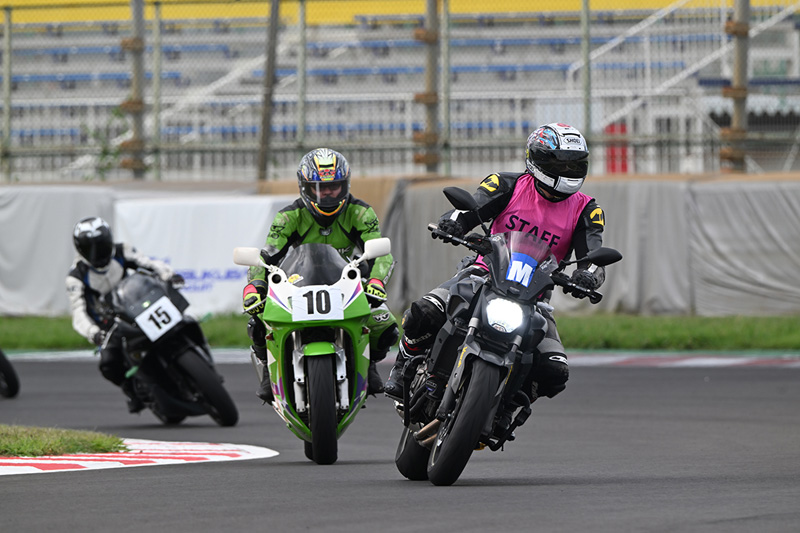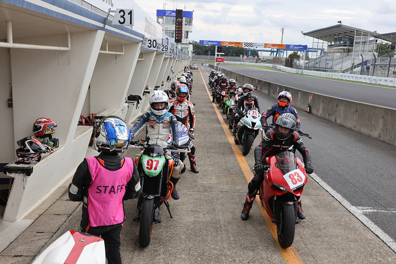 開催となった9月19日はお天気に恵まれました。サーキットデビューの方、サーキットビギナーの方を中心に、たくさんのライダーが集まりました。20分走行を3本と思う存分スポーティな走行を楽しめます。「特に加速が気持ち良くて、楽しかった」とは参加者の方。愛車の「いつもと違う一面」を楽しみました。