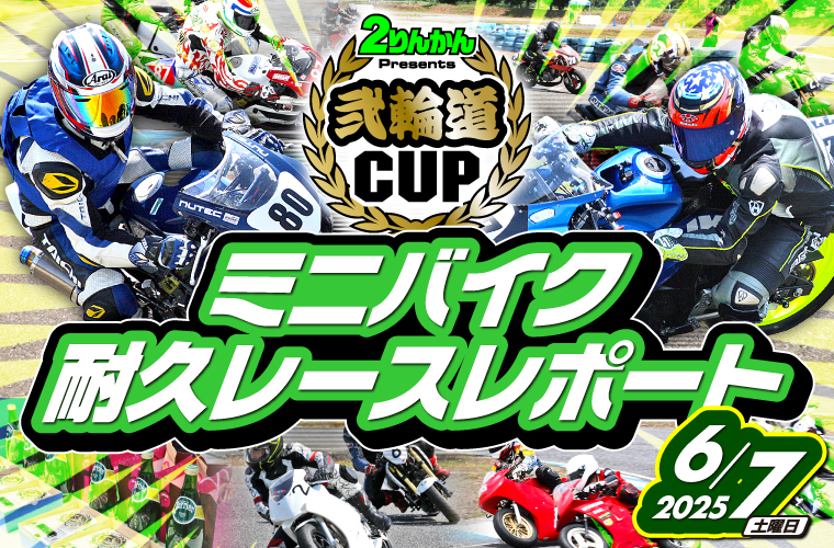 魅力がたくさん詰まった耐久レースを、手軽なミニバイクで楽しんでもらうのが『弍輪道CUP』です。幅広い車種で、多くの方に楽しんでいただくために、2りんかんが趣向を凝らしたルールと内容になっています。