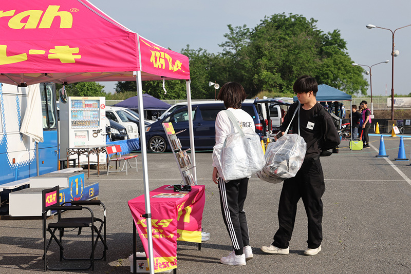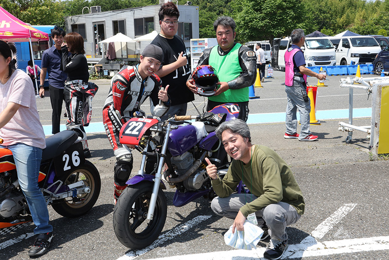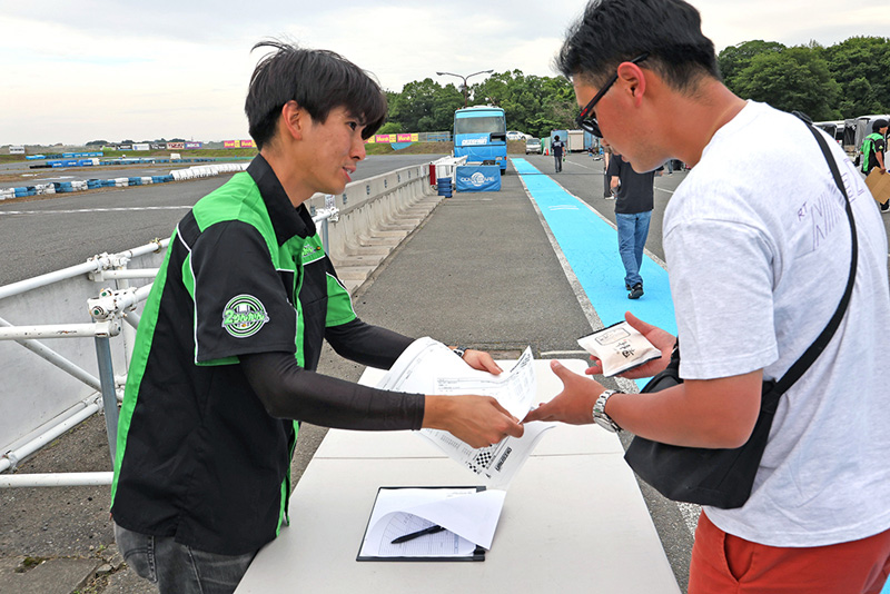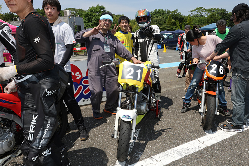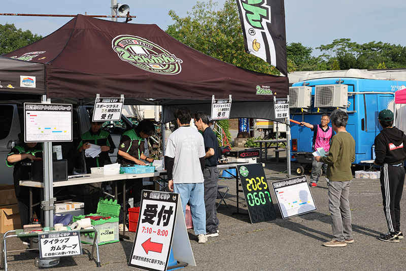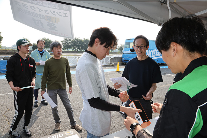 レースデビューの方やレースに慣れていない方、みんなでワイワイと楽しくレースをしたい方にオススメなのが『エンジョイ90分耐久レース』です。スタートの順番は受付時の抽選で決まりますから、練習走行はまるまる練習に使えます。「レースに出てみたいって言われたんで、このレースに連れてきました」(参加者)というチームもあり、慣れていない方を優先に走行している場合も。決勝レースでも規定のタイムより速く走ったら「その周はノーカウント」というルールなので、速い人も自重しなければなりません。タイム差を縮めることで、抜かれる怖さが軽減します。