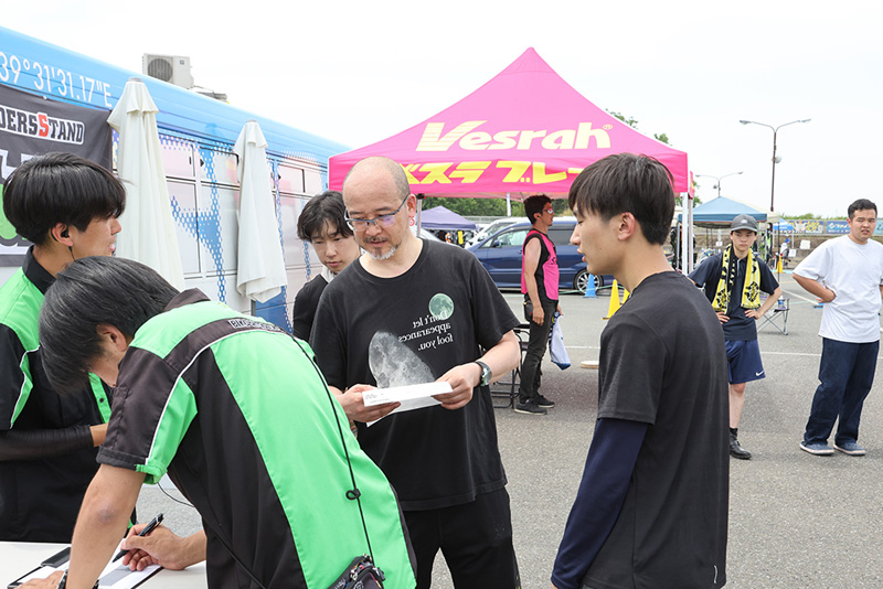 アフターミーティングではジャンケン大会で盛り上がります。中にはWINSヘルメットも登場して、みんな大興奮! 最後は当日のリザルトを1チーム1枚プレゼントして終了となりました。