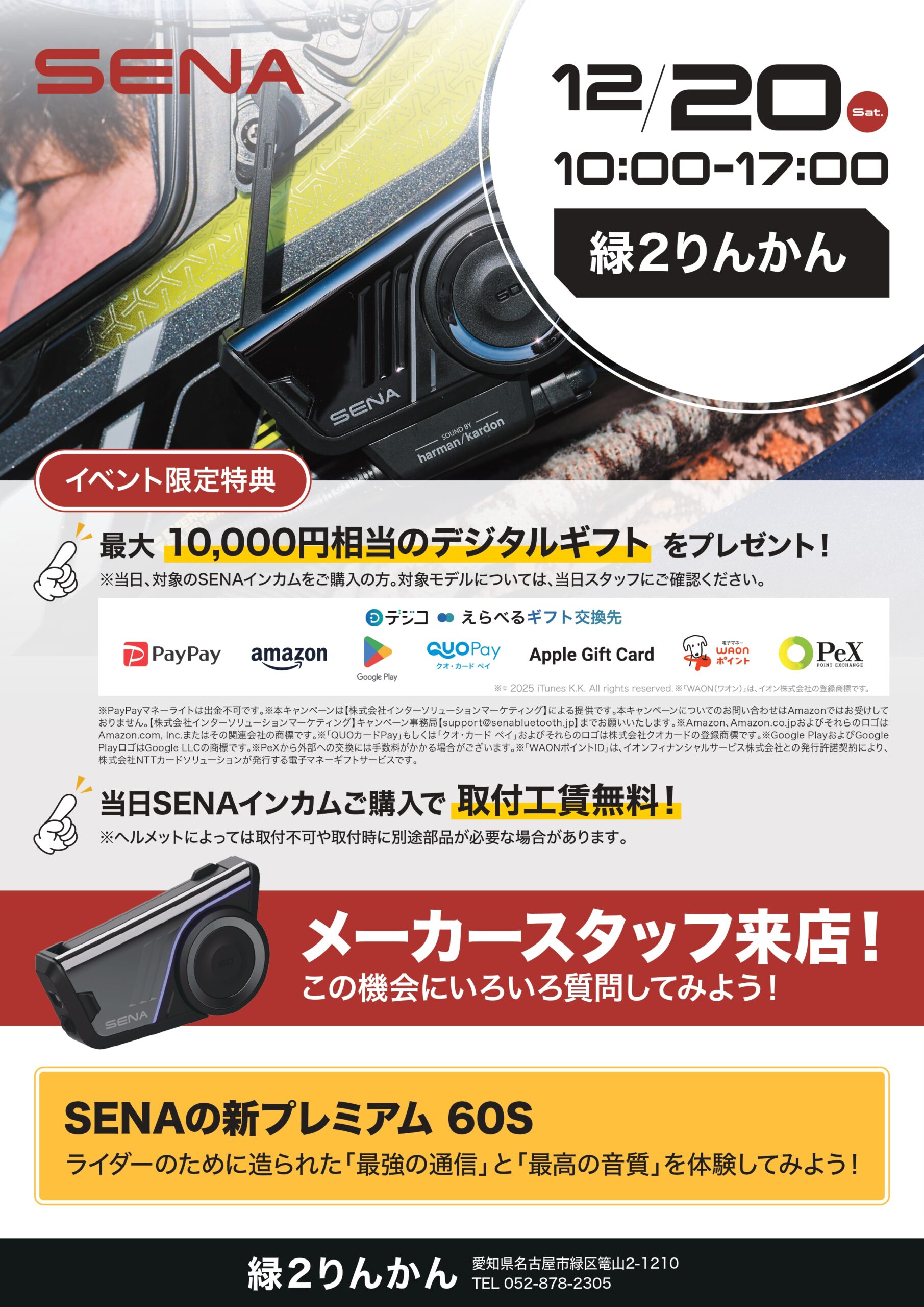 当日はSENAインカムのエキスパートスタッフが来店。イベント当日は、話題の最新モデルの展示から、様々なラインナップをご用意。お客様の要望を叶えるピッタリな一台を見つけてください。