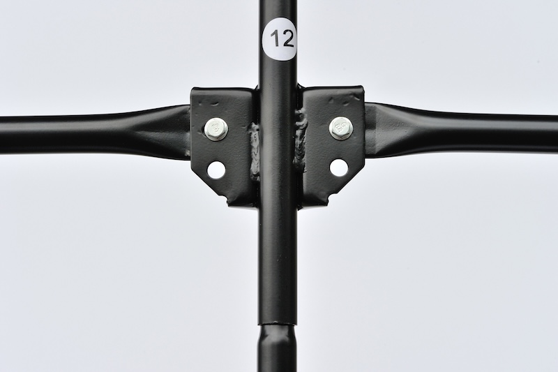 フレームは直径22mm板厚1.2mmの肉厚スチールパイプを採用。フレームの連結はボルト固定とプッシュボタン固定を組み合わせることで、強度と組み立ての簡易性を両立しました。連結部の穴を利用して筋交による補強が可能です。