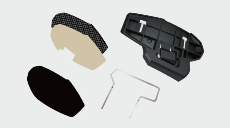 B+COMをヘルメットに取り付けるために必要な台座であるベースプレート。
