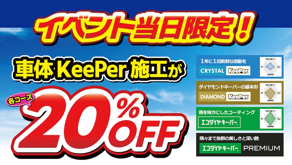 ※当日は混み合う場合がございます。車体へのKeePerコーティング施工はWEBもしくはお電話にてご予約承ります。