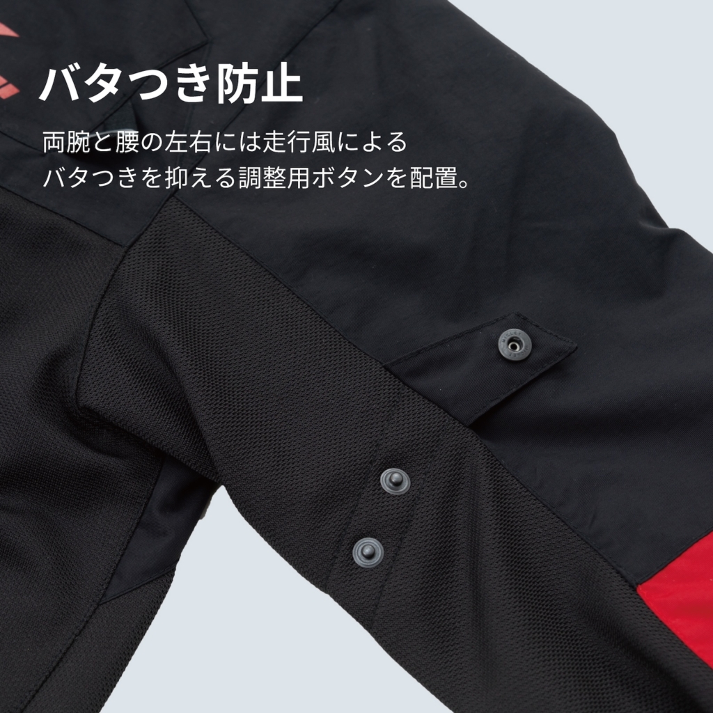 広範囲に配置されたメッシュ素材と布地を組み合わせ、強度を持ちながらも通気性に優れた春夏向けエアスルージャケット。スポーツ走行ユーザーに応えるスポーティーさを残しつつ、ツアラーやビッグシングルなど幅広いシーンでお使い頂ける落ち着いたデザインが魅力的。