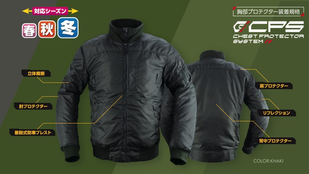 安全性を高める胸部プロテクションCPS対応。防寒前身頃を外しても使用が可能です。