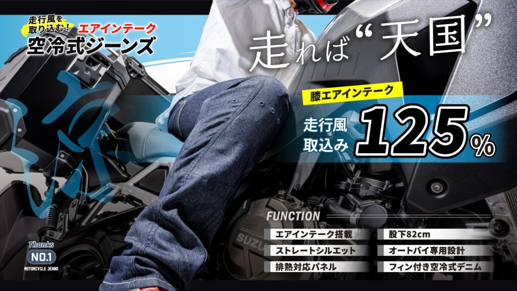 5月29日2りんかん全店独占販売『エアインテーク』で走行風を直接取り込む【エアインテーク空冷式ジーンズ】