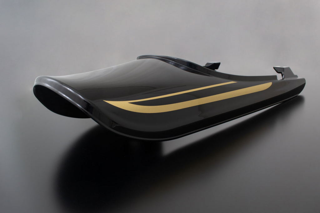 ベースカラーは強い光源の下でキラキラと輝くメタリックディアブロブラック。ラインは暗めのブルーを採用する事で重厚感のあるイメージに。このカラーリングにARCHIのロングテールカウルを合わせたイメージがこちら。