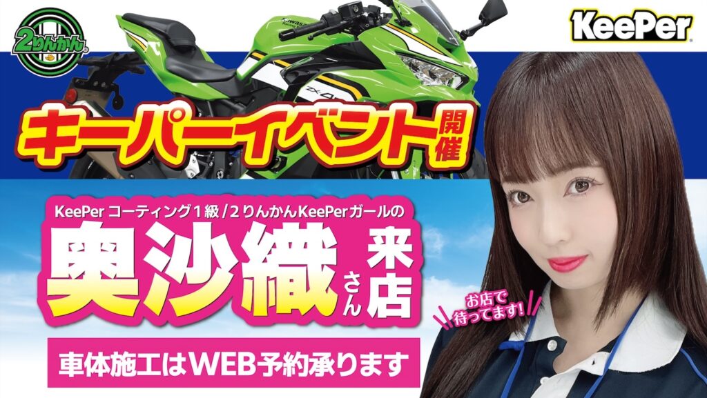 【2りんかんイチオシのバイクボディコーティング「KeePer」のイベントを開催!】 イベント当日は、2りんかんKeePerガールの奥沙織さんが来店!さらに2りんかん内でも... -