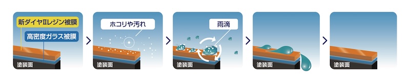 雨が降るたびに汚れが落ちやすく、ホコリや汚れが固着しにくいため、洗車の手間を大幅に軽減。美しい艶と清潔感のある外観を長期間維持します。
