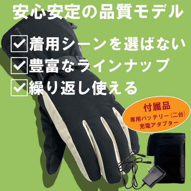 寒い季節にぴったりの電熱グローブがバージョンアップして新登場。7.4Vバッテリーを使用し従来品(当社比)と比べ温度を約10℃アップしました(高温使用時)。