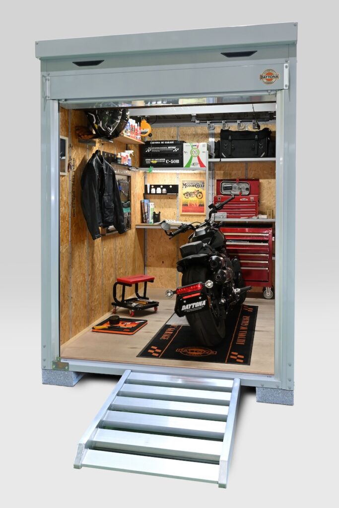 スリムなバイク一台分のサイズから、複数台を余裕で保管できる余裕のサイズまで豊富にラインナップ。価格は全国一律の明快な価格設定となっております。https://daytona-mcgarage.com/basic/