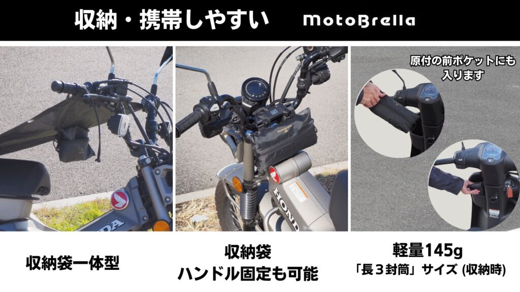 MotoBrellaは、そんな常識を変える“ちょい掛け”スタイル。
