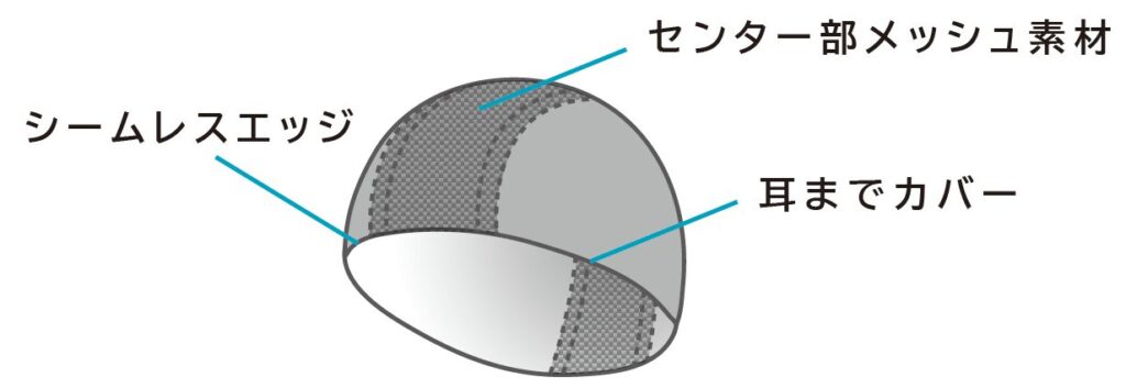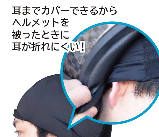 伸縮性の高いアイスシルク生地を使っているので耳まで覆ってかぶれば耳が折れて不快な思いをする事が少なくなります。