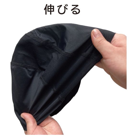 伸縮性の高い生地なので男女を問わず、ある程度のサイズ幅に対応できます。ピッタリフィットで髪型の崩れも最小限に抑えます。