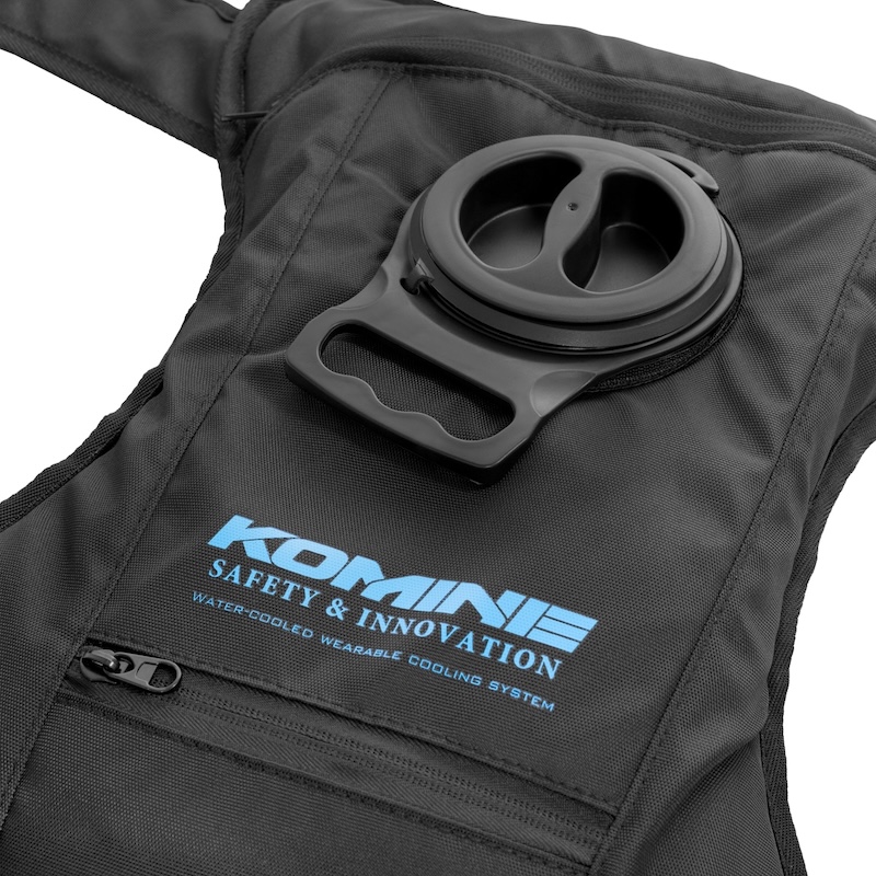 空冷でダメなら水冷!これが最適解なのは内燃機関を見ても明らか。KOMINE KK-913は、常に冷えた水を循環させる為、多少大仰ではありますがタンク代わりになるサイバックを装備。水と凍ったペットボトルを装備していただければ約2時間はつめたい水が体表面を循環「ぬるくなってきたかな?」と言った頃合いでコンビニなどで凍ったペットボトルジュース等を購入していただければエンドレスで冷却が可能になります。