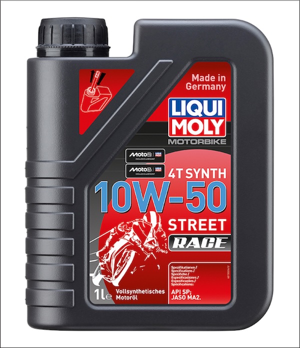 「LIQUIMOLY Motorbike 4T Synth Street Race」エンジンオイルは摩擦抵抗を極限まで抑えた潤滑性能と強靭な被膜形成によりエンジンを保護。さらに熱に強く、突出したクリーニング性能(カーボンやスラッジ等の除去)により、エンジン性能とクラッチ操作、シフトフィーリングをベストな状態で長期間維持させます。熱に非常に強く、レースはもちろん、スポーツ走行、ツーリング、街乗りなど、あらゆる状況下においてオートバイ本来の性能を最大限発揮させる、ベストパフォーマンスオイルです。
