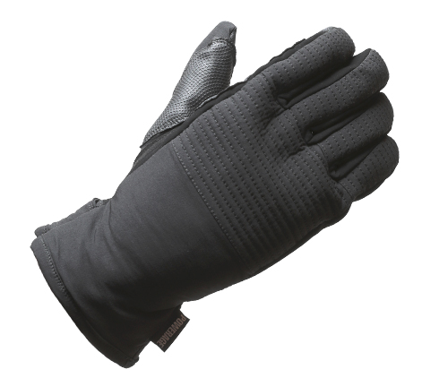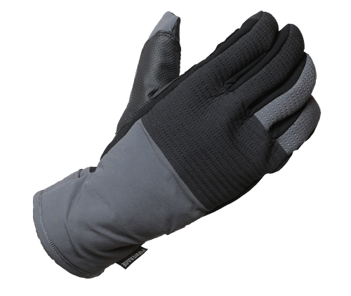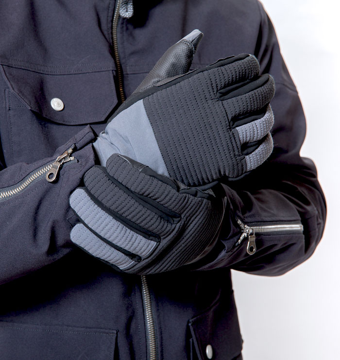 軽さと、手にすっと馴染むやわらかさ。操作性を追求した設計で、グリップ操作もスマートに。中綿入りのソフトシェルで防風・撥水性も備えた安心設計。さらに、防水透湿フィルムと衝撃吸収素材〈PORON®XRD®〉を搭載し、突然の雨や衝撃からもしっかりガード。スマートフォン操作やグリップヒーターにも対応しています。
