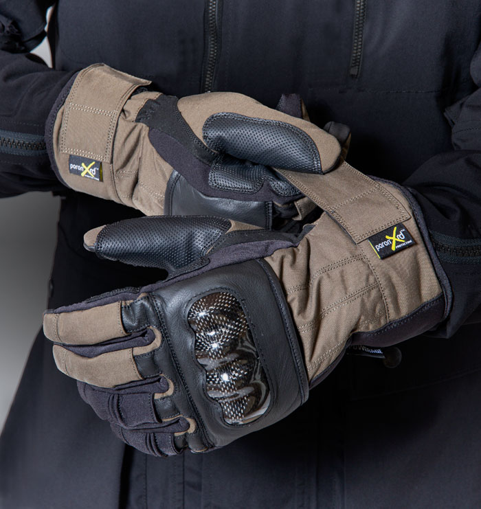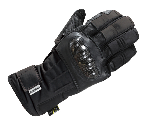 カーボンナックルプロテクターとテキスタイル素材の組み合わせが魅力の秋冬グローブ。落ち着いたトーンでコーディネートしやすく、安全性・快適性・スタイルを妥協しないライダーのための一双。防水透湿フィルムで冷気や雨、蒸れを防ぎ、衝撃吸収素材〈PORON®XRD®〉が長時間ライドでも疲れにくさをサポートします。もちろん、スマホ操作やグリップヒーターにも対応しています。
