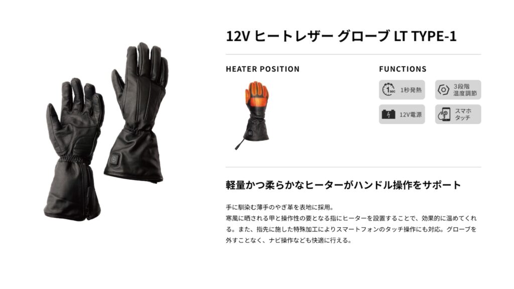 軽量かつ柔らかなヒーターがハンドル操作をサポート!12V ヒートレザー グローブ LT TYPE-1
