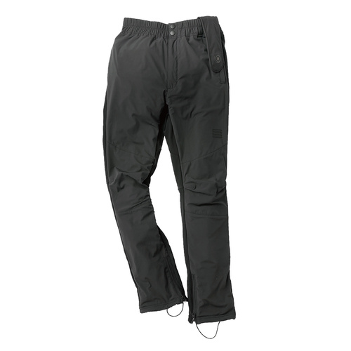 ヒーターを太腿・脛部前面に配置し、曲げ伸ばしの動きが多い膝部でヒーターを切り分けることで、自然な乗車姿勢と下半身のスムーズな動きを実現。後面には、伸縮性と通気性を兼ね備えたストレッチスムース素材を採用し、身体へのフィット感も抜群。また、裾のドローストリングを足の指の間におくことで、アウターパンツを重ね着する際のずり上がりを防ぎ足元を温めてくれます。