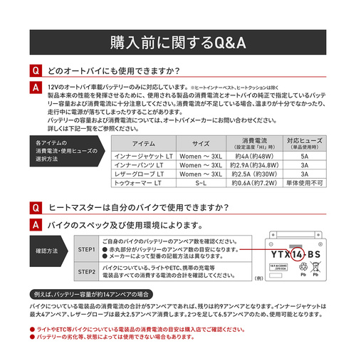 【セット内容】パンツ×1/バッテリーハーネス×1/ヒューズセット(15A/10A/7.5A/5A)×1/スプリットコード×1