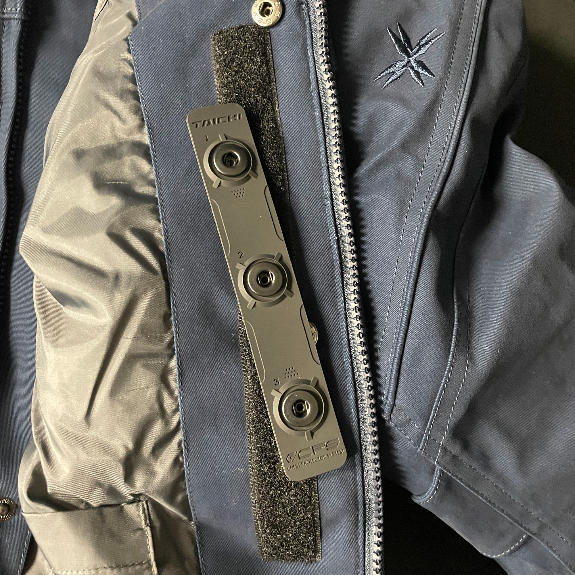 強度に優れたストレッチコットン素材をベースにカジュアルに着用できるライダース・マルチユースモデル。表生地は伸縮性とハリコシが特徴の高密度ストレッチクロス。前中心に機能搭載。