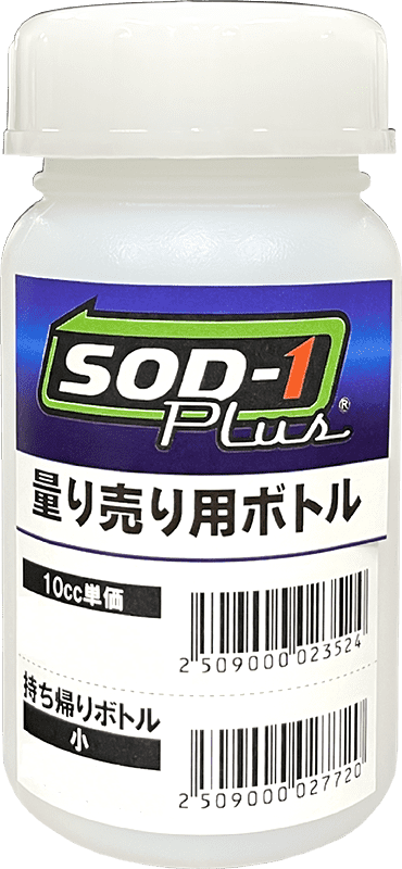 SOD-1Plusはエステルをベースとして製造された化学合成オイル添加剤で、エステルが持つ特性を最大限に生かして、幅広い種類の潤滑油に対応可能にしています。車の使用過程(走行5,000kmを目安)におけるエンジン油圧を利用した循環系統付着物の還元と性状アップを目的とした予防整備製品です。排気ガスのCO、HC低下、燃費の改善、ローコストで各潤滑油に関わるトラブルを解消する事からまさに幅広い意味でのエコオイルと言えます。
