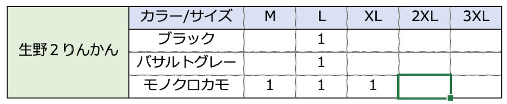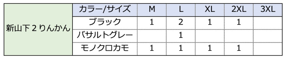 福袋取扱在庫 カラー・サイズ一覧
