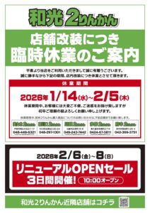 ただいま和光2りんかんは改装中となっております。