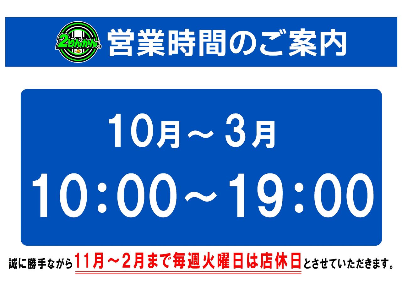 開店時間と閉店時間が30分ほど早くなり、火曜定休日が増えますので