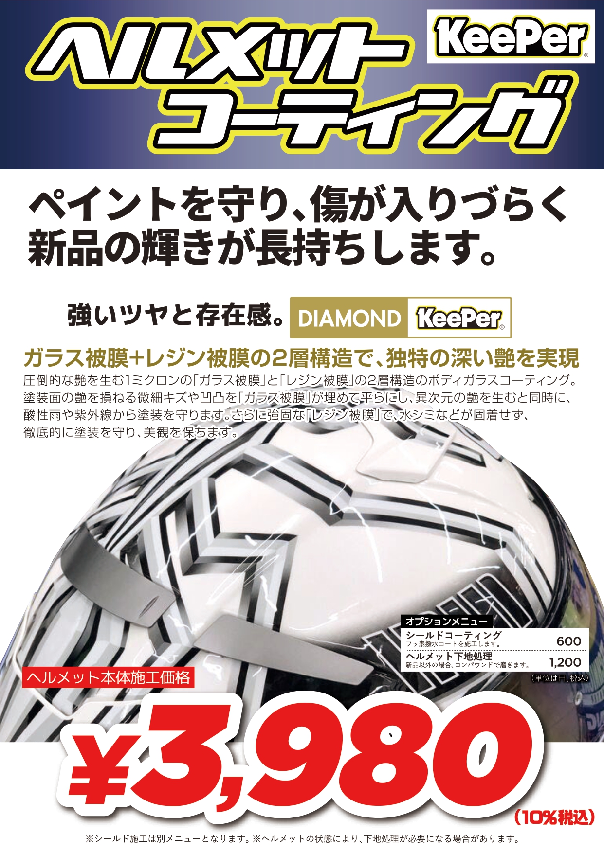 多摩2りんかんでは、Keeperヘルメットコーティング大好評受付中です!