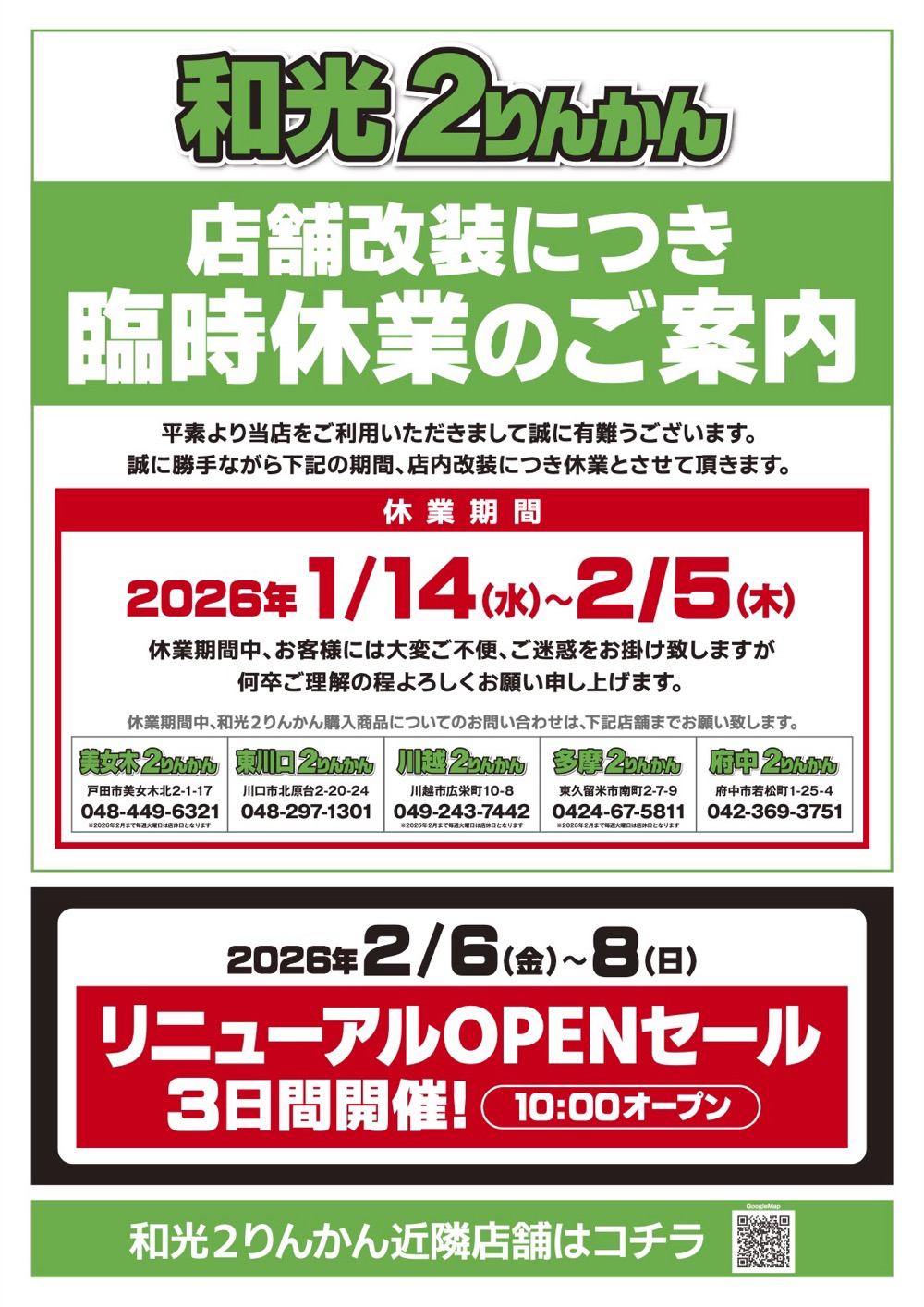 ただいま和光2りんかんは改装中となっております。