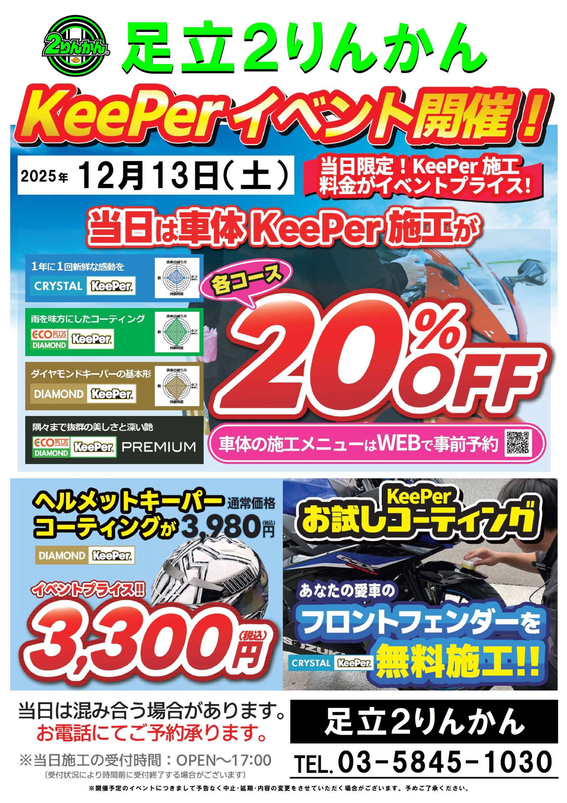 当日限定で車体KeePer施工が各コース20%OFFとお得に施工が出来ます。