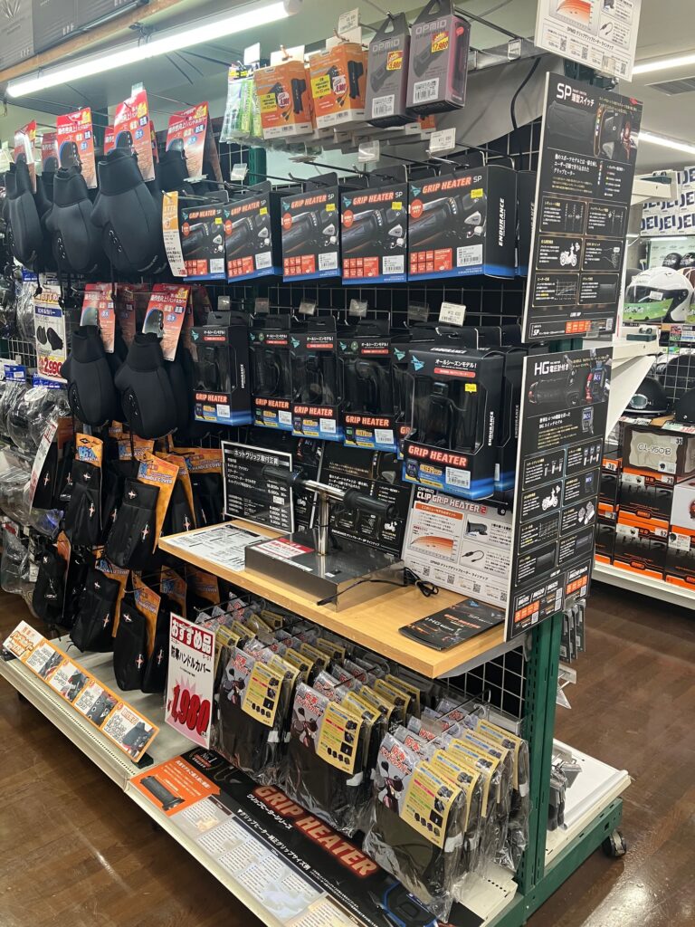 手軽に防寒が出来るハンドルカバー、手のひら側から伝わる熱で温まるグリップヒーター。