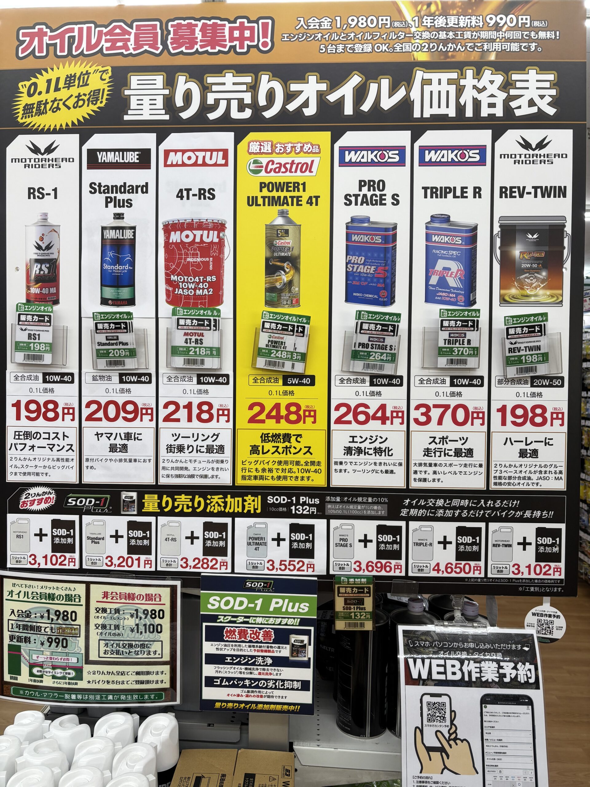 小田原2りんかんでは5種類のオイルを0.1Lから販売しております!