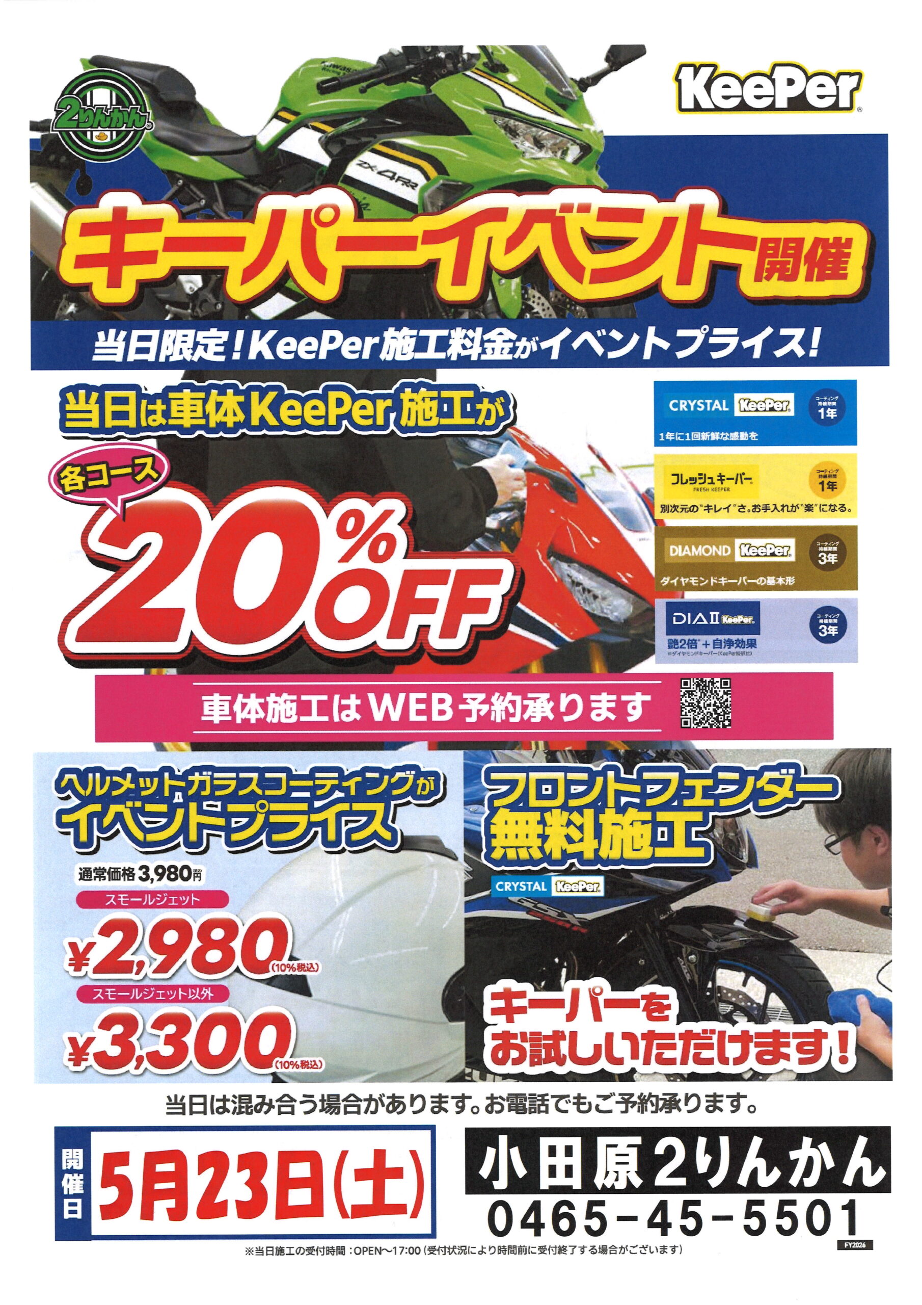 5月23日に小田原2りんかんでkeeperイベント開催!当日は全てのkeeperメニューが20%OFF!!